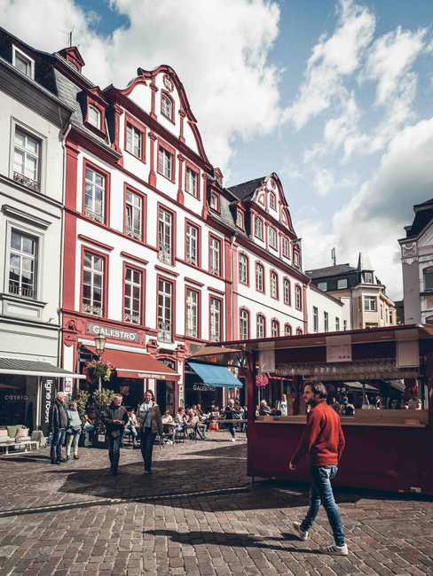 Jesuitenplatz est sans aucune doute l’une des places que nous avons préférée à Coblence. La statue centrale, l’architecture des différents bâtiments encadrant la place ainsi que leurs arches et le sol pavé font de cette petite place un coin où l’on s’arrête volontiers pour boire un verre et profiter de l’ambiance. Lors de notre passage, la ville accueillait également un festival, donnant une atmosphère encore plus festive à l’ensemble et attirant beaucoup de touristes (mais nous empêchant de prendre tous les clichés architecturaux qu’on aurait souhaité, oups).