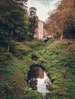 Surplombant le Rhin à quelques minutes à peine de Coblence, il vous faudra marcher quelques minutes sur une route sinueuse entre les arbres pour parvenir à l’entrée du château de Stolzenfels, en passant an plus devant un autre donjon/château (nommé Schlossklaus) qui parait à l’abandon mais véritablement perdu dans la nature.